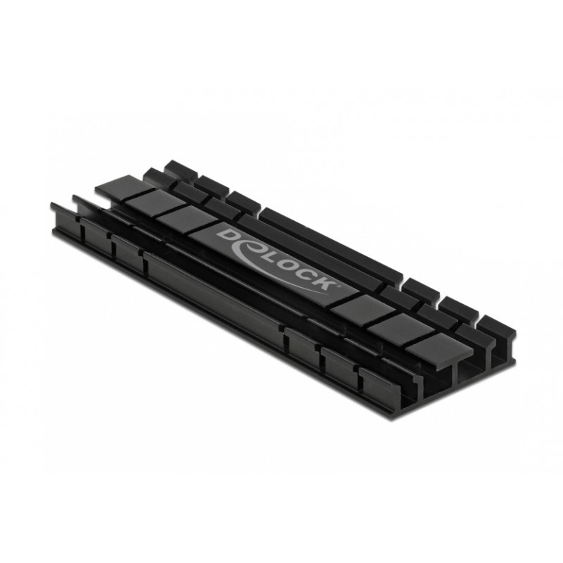 This heat sink by Delock can be used for heat dissipation of an M.2 module and can be fixed with the attached self-adhesive thermal pads to the M.2 module